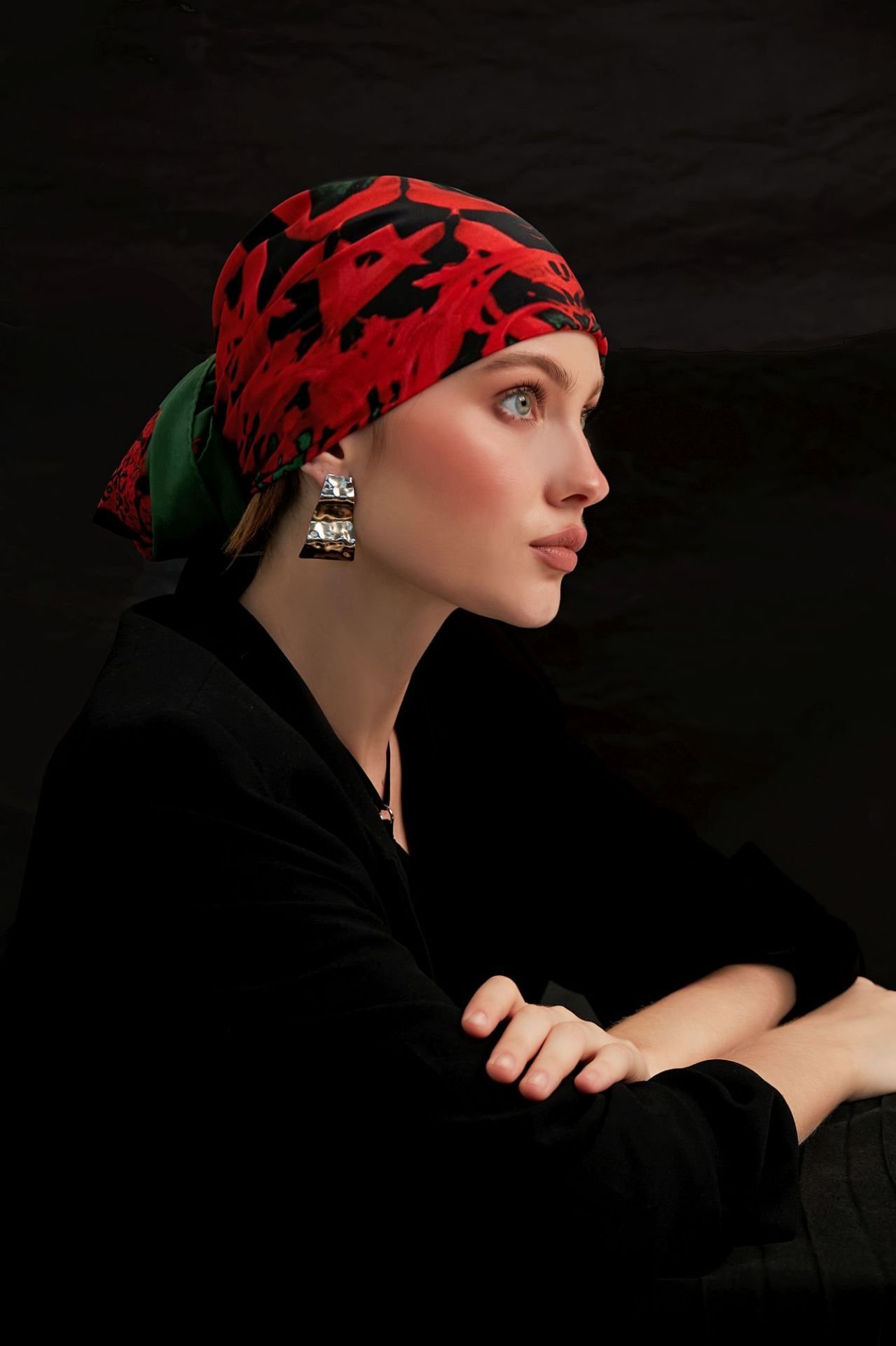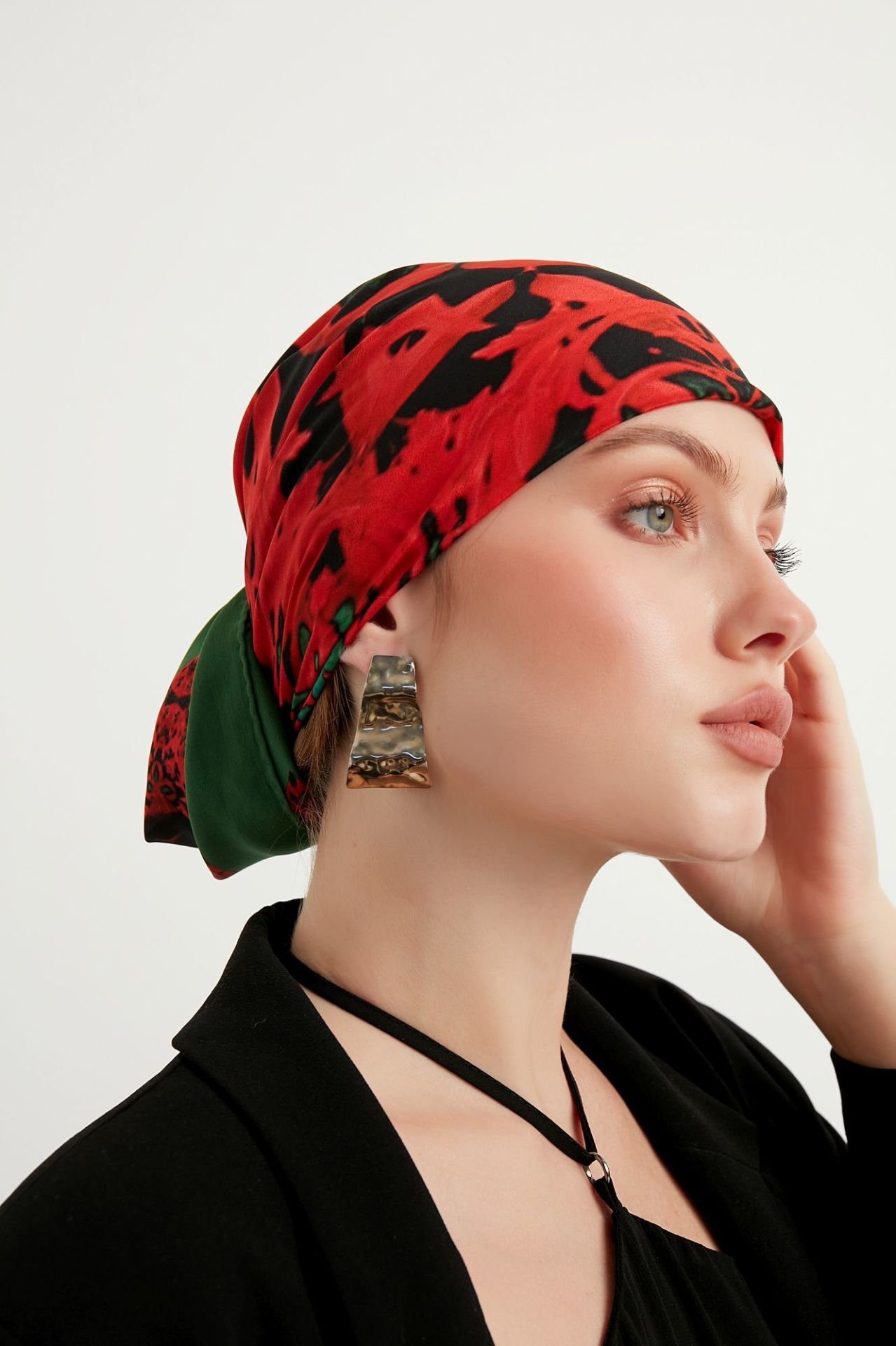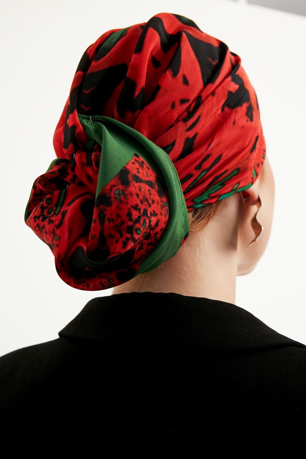 Tarzına önem veren, sofistike bir zarafetle fark edilmek isteyenler için her kıvrımında ipeğin doğal şıklığını hissettiren, bordo ve zümrüt yeşili tonlarının çarpıcı uyumu ve kristalimsi desen formları ile tasarlanmıştır.