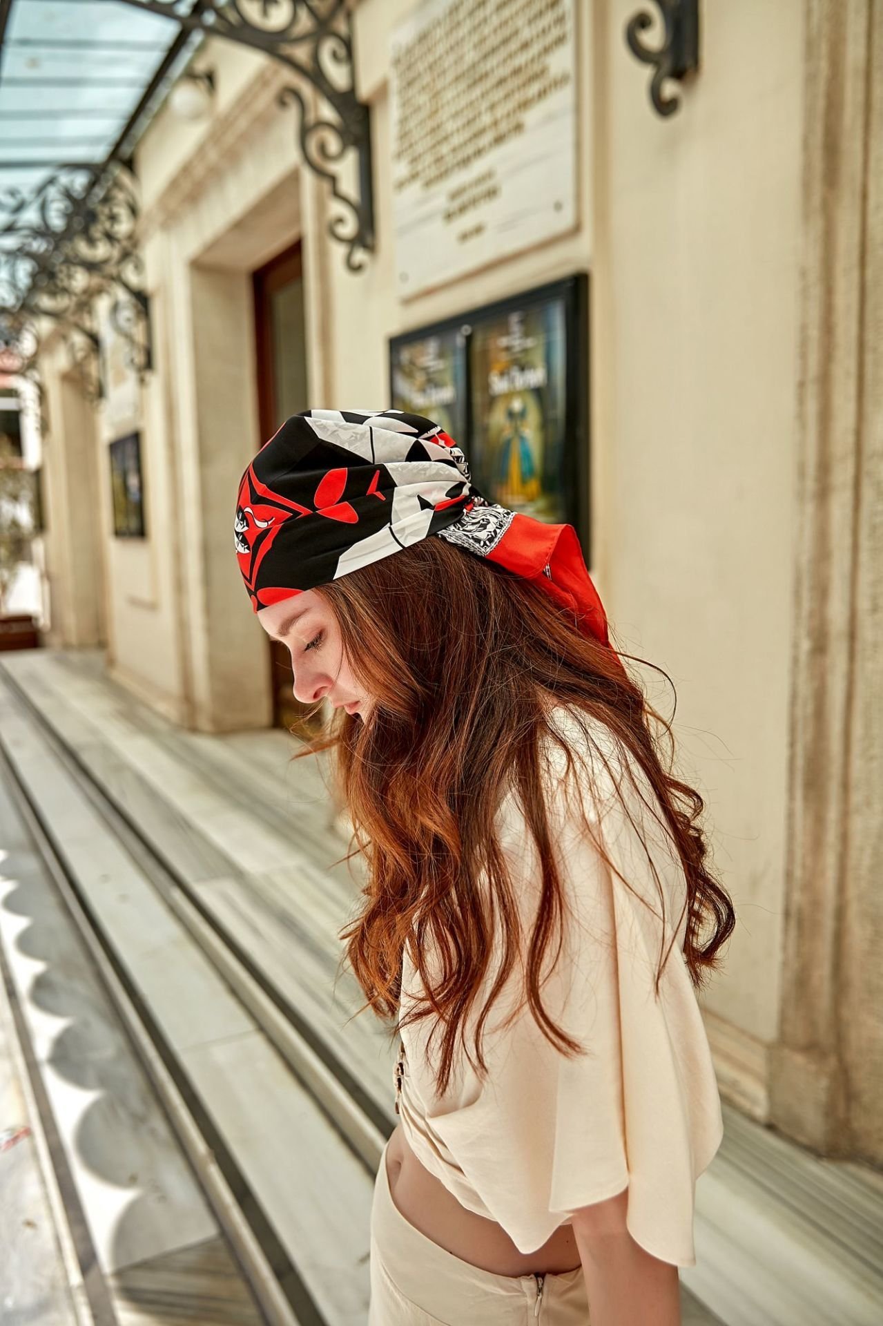 AKM Koleksiyonu Sahne Sanatları temalı Krep İpek Fular 65X65cm