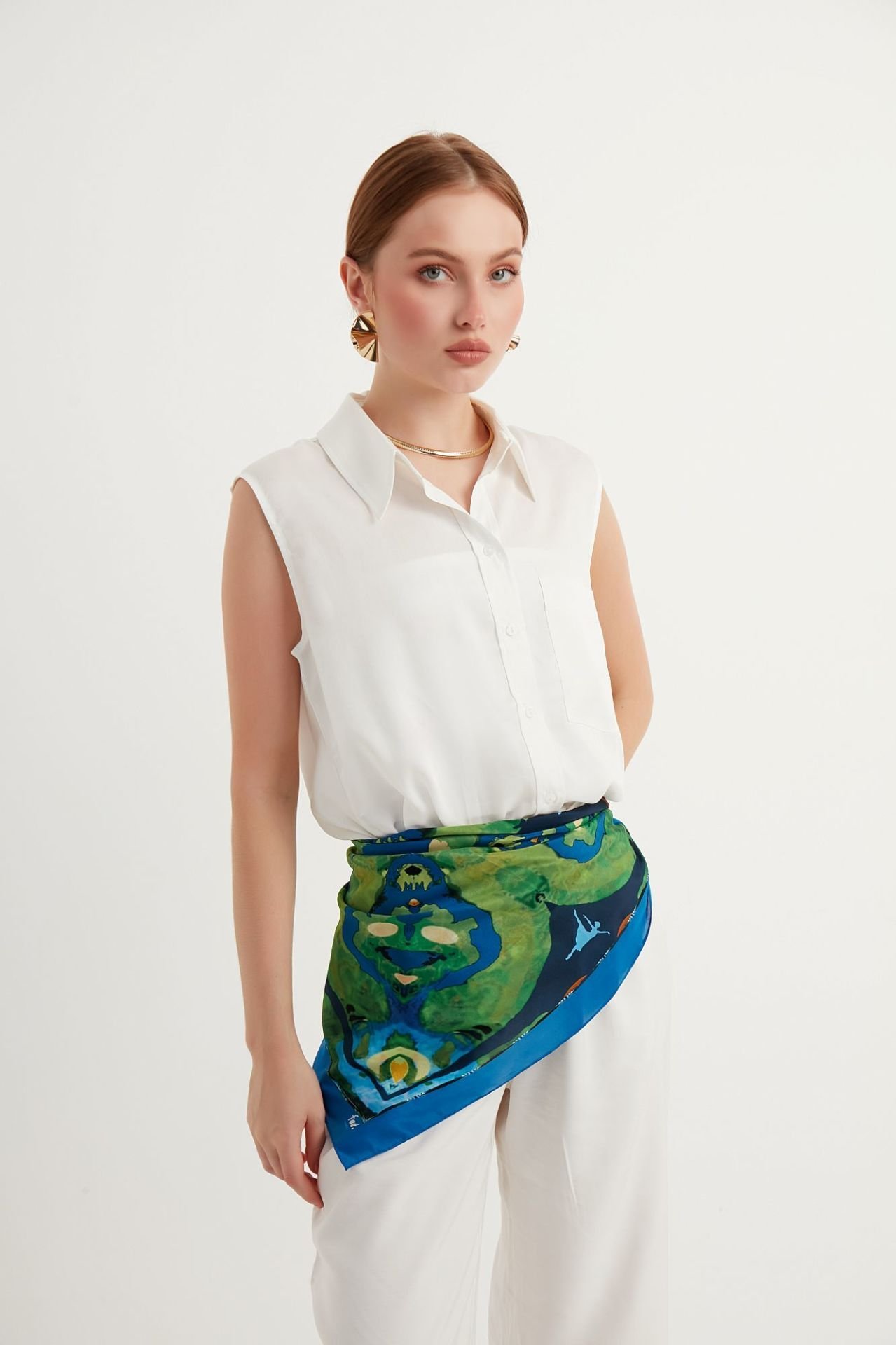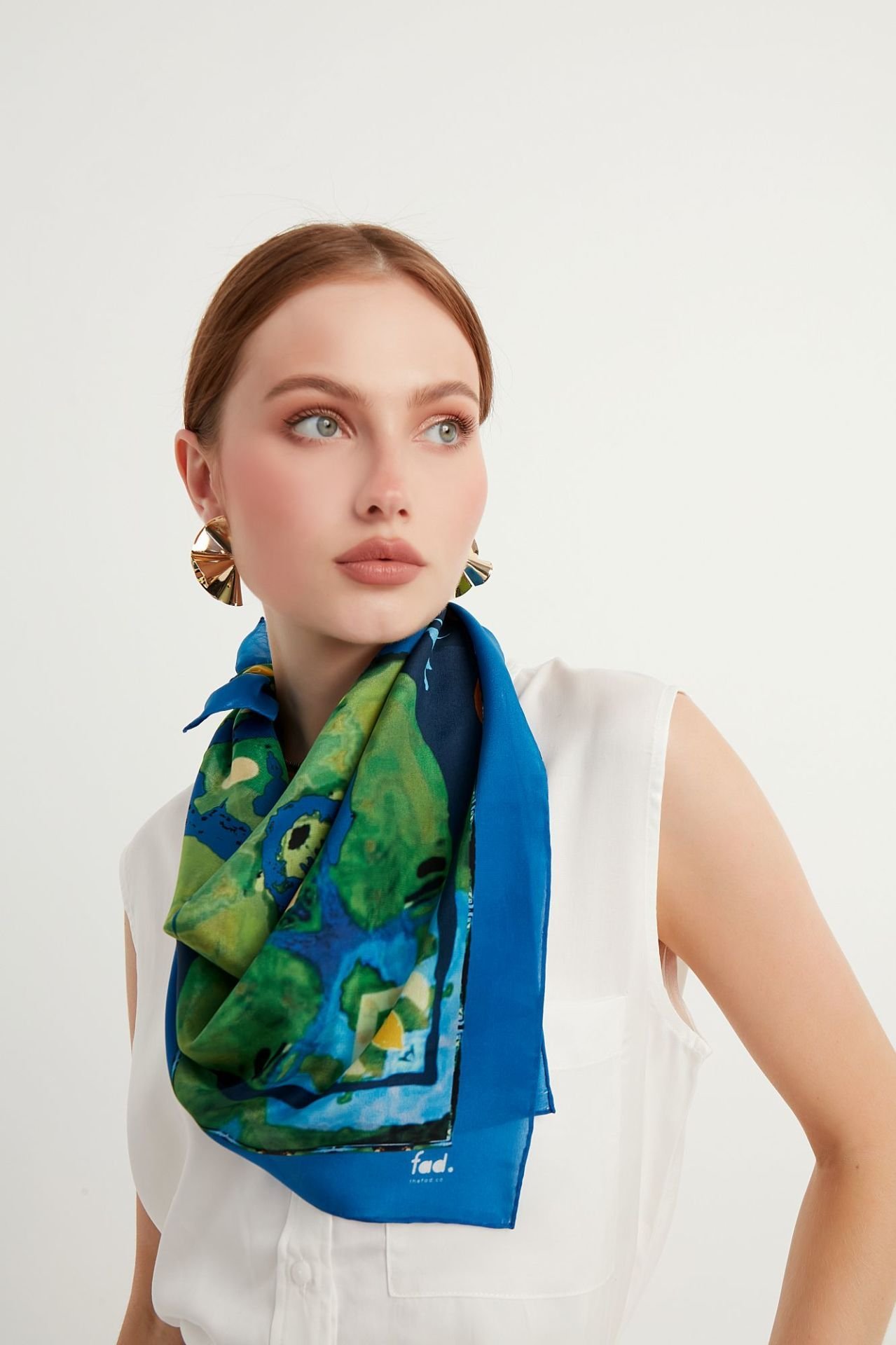 AKM Sahne Sanatları Bale temalı Krep İpek Fular Eşarp Yosun yeşili Derin mavi 65X65cm