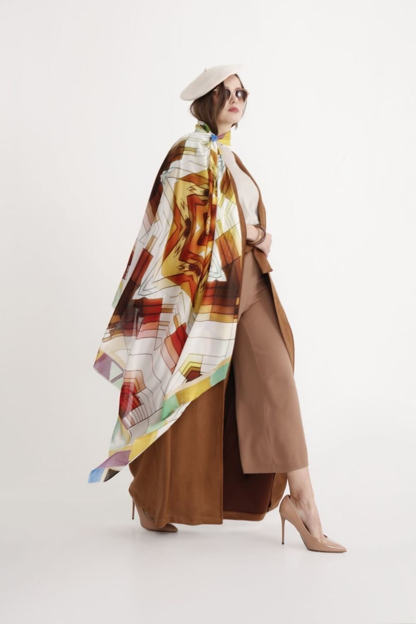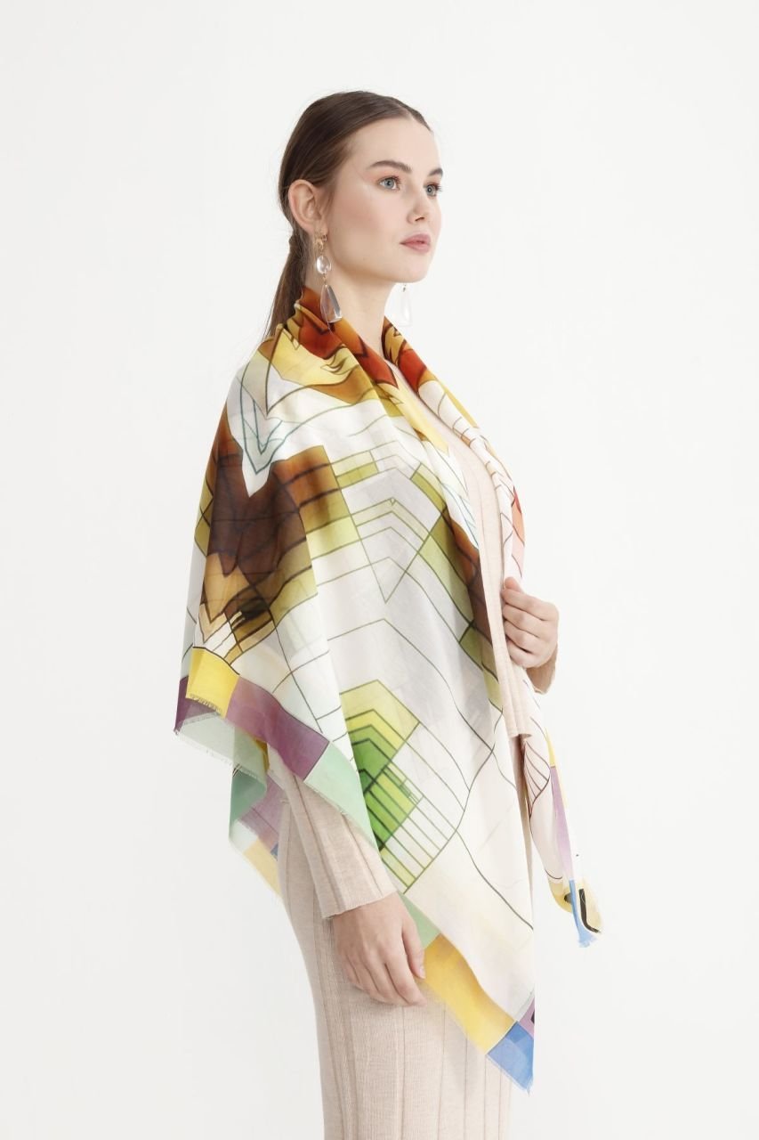 Fraktal formüllerle bir sanat eseri olarak canlı renk ve zamansız çarpıcı desenler oluştururarak tasarlanan TheFAD.co Pamuk&İpek Şal ile gerek günlük gerekse abiye kullanımlarınızda yılın her mevsiminde her ortamında farkedileceksiniz.