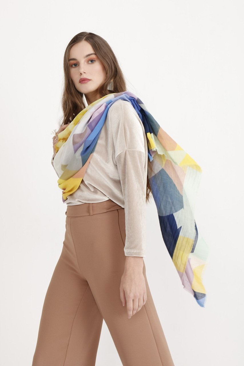 Fraktal formüllerle bir sanat eseri olarak canlı renk ve zamansız çarpıcı desenler oluştururarak tasarlanan TheFAD.co Pamuk&İpek Şal ile gerek günlük gerekse abiye kullanımlarınızda yılın her mevsiminde her ortamında farkedileceksiniz.