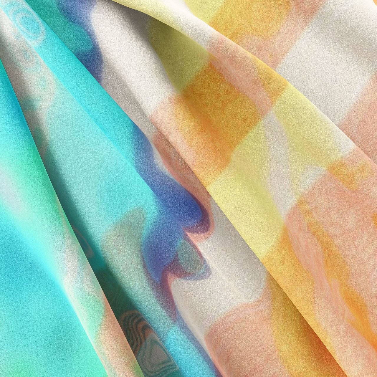 Tasarım: Desenler özel Fraktal formüller kullanılarak bu eşarp için özel olarak tasarlanmıştır.