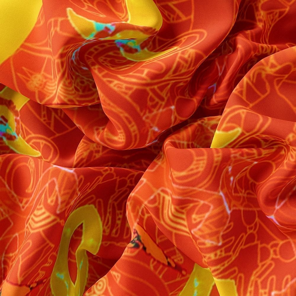 Tasarım: Desenler özel Fraktal formüller kullanılarak bu eşarp için özel olarak tasarlanmıştır.