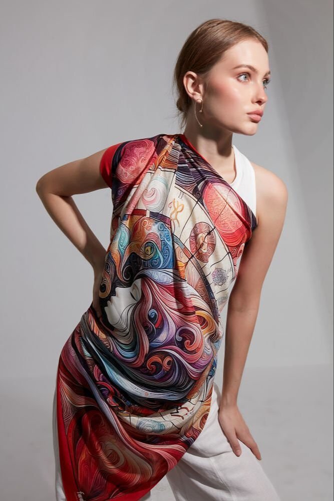 Bu krep ipek şal, güzellik, beğenilme ve fark edilme duygularınızı en yüksek seviyeye taşırken, size bir aksesuardan daha fazlasını sunar: Bir kimlik, bir ifade ve bir duygu. Bu şalı omuzlarınıza aldığınızda, sadece bir stili değil, aynı zamanda bir hikayeyi de taşımış olursunuz. Yıldızların altında, kendi mitolojinizi yaratmaya hazır mısınız?